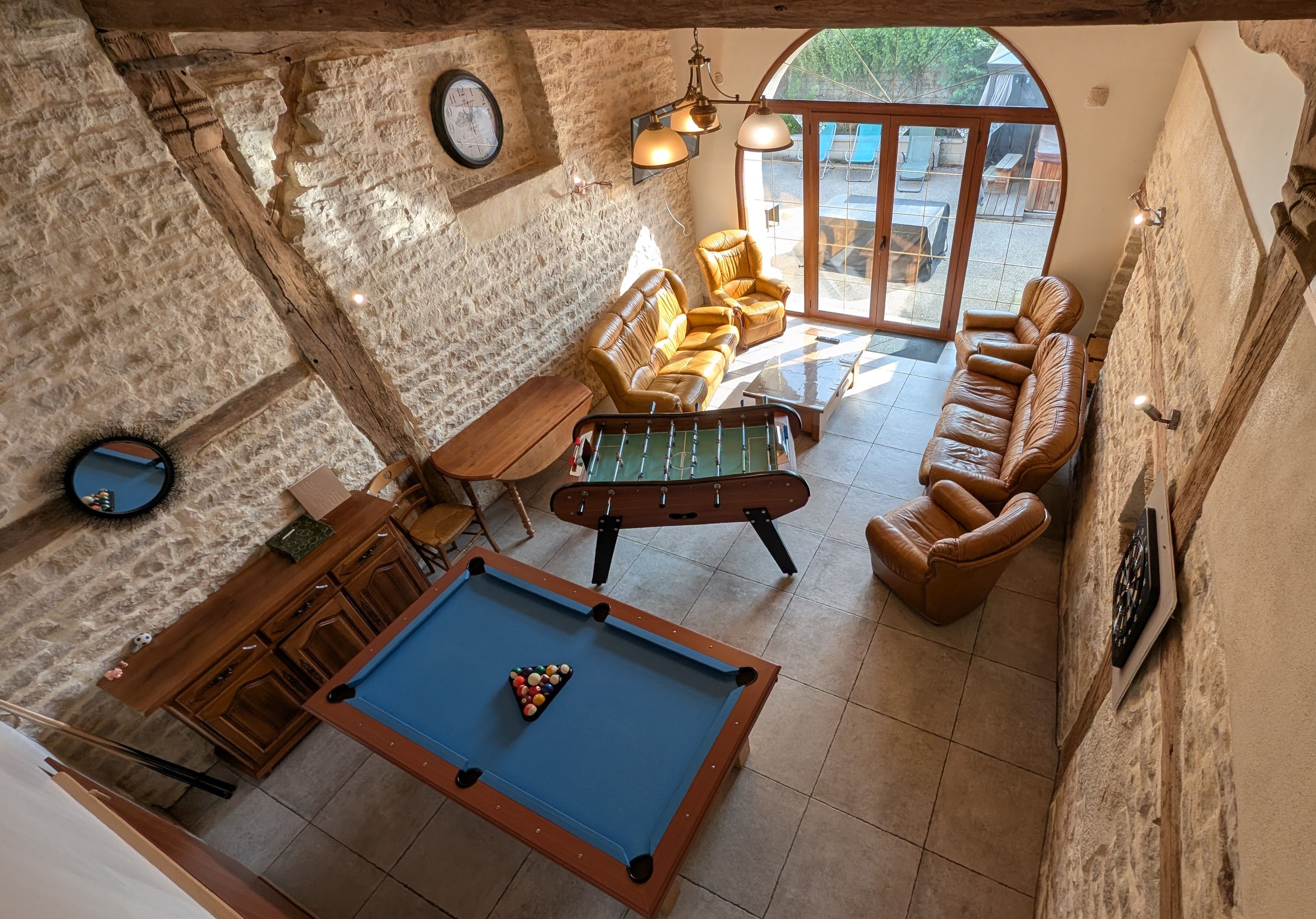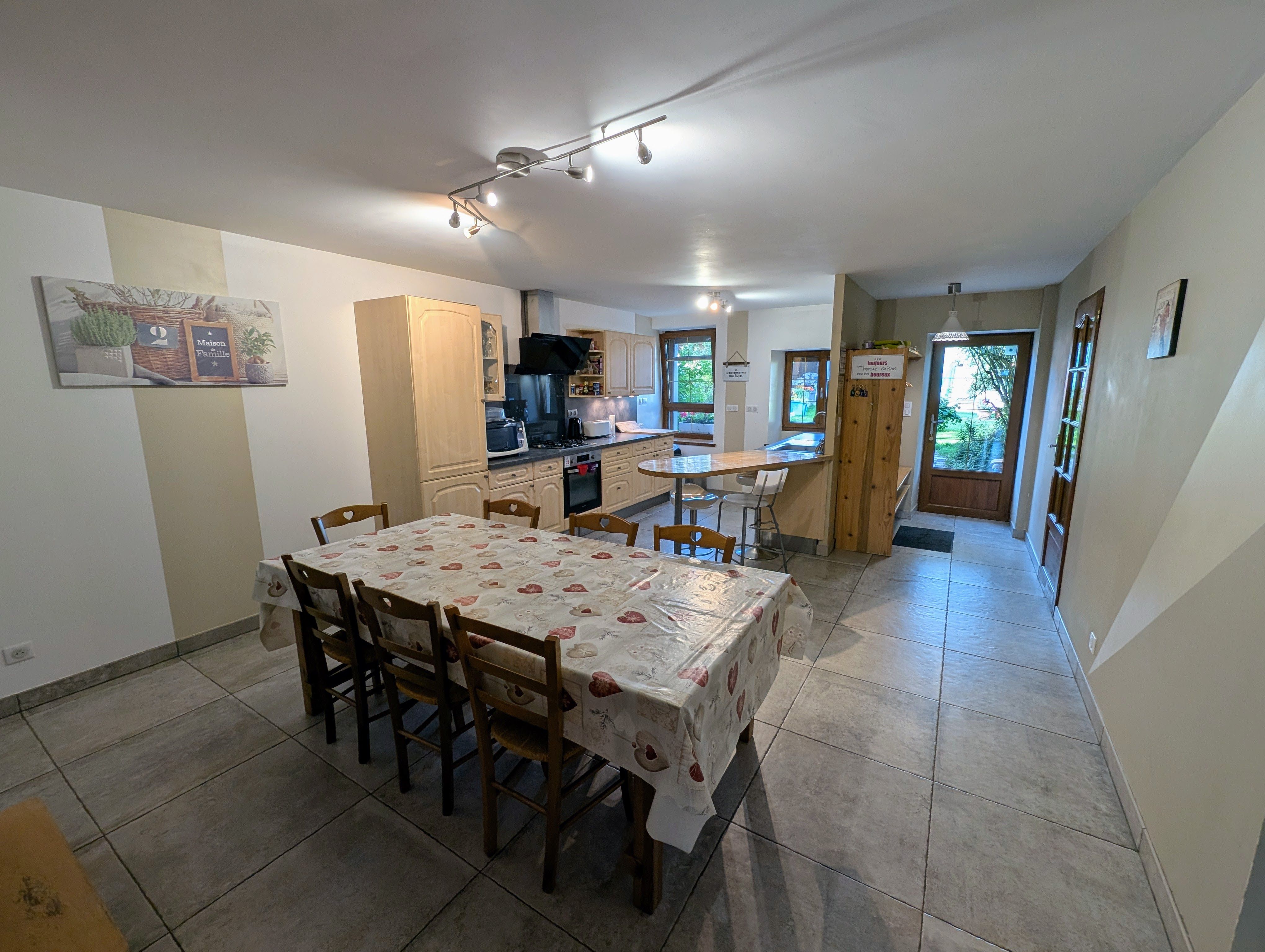 Le gîte comprend au rez-de-chaussée : cuisine équipée, salon/salle à manger, avec billard, une buanderie, une chambre 2 personnes, une salle de bain et douche, WC. À l'étage : chambre familiale, 4 personnes : 2 lits 1 personne, 1 lit 2 personnes, avec salle d'eau/WC, privatifs à la chambre, 1 chambre 2 personnes + 1 lit 1 personne, avec salle d'eau/WC (privatifs), 1 chambre 2 personnes, avec salle d'eau/WC (privatif). Aspiration centralisée. Chauffage au sol. Charges chauffage, draps de lit inclus. Internet WIFI. À l'extérieur : une terrasse clôturée sans vis à vis, à l'arrière de la maison. Sur place, vous pourrez découvrir l'exploitation agricole bio, labellisée Bienvenue à La Ferme, qui fait face au gîte. Productions : volailles, viandes bœuf, légumes, œufs. Pour les enfants : jeux extérieurs pour enfants, à côté du gîte. Possibilité 11 personnes.