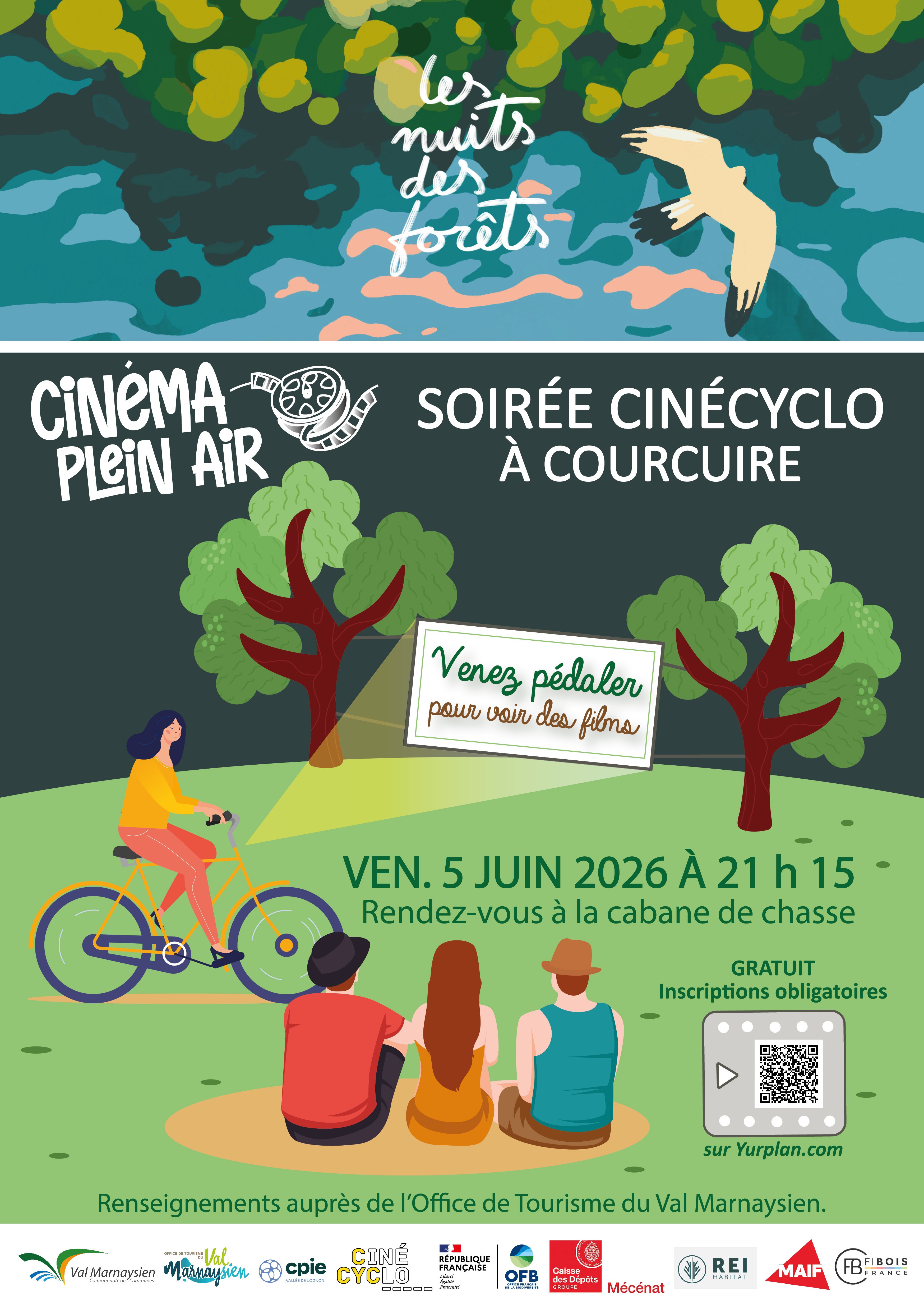 À l'occasion des Nuits des Forêts le Cinécyclo s'invite à Courcuire sur les pelouses sèches pour vous offrir une séance de cinéma en plein air autonome en énergie : c'est à vous, public, de pédaler pour découvrir la projection de documentaires ! Ouvert et accessible à tous. Inscriptions obligatoires sur Yurplan.